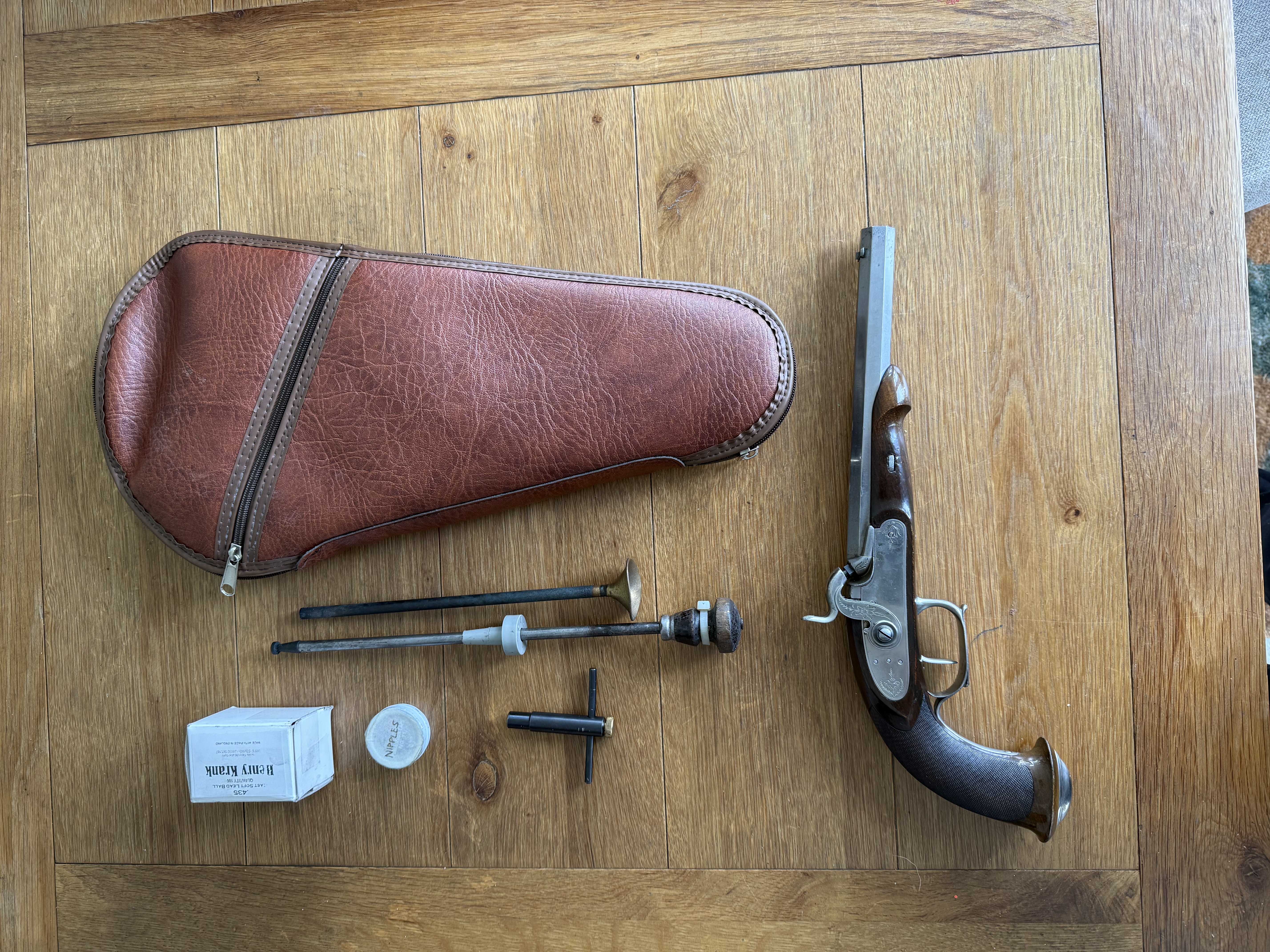 Perdersoli Le Page . 44 cal percussion pistol with lots of accessories